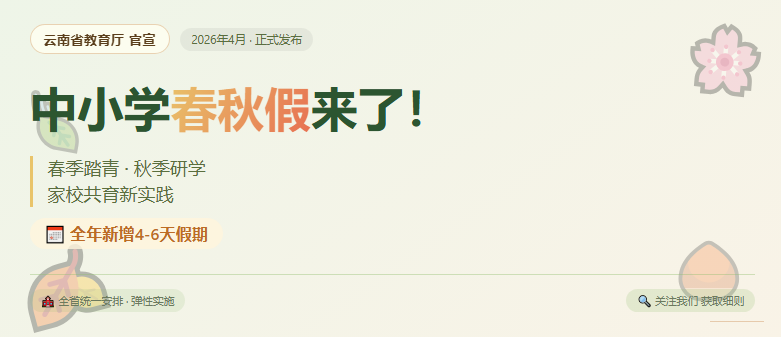 全云南统一设周三为“无作业日”!教育厅新举措来了!