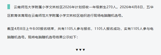 1105人参与电脑随机选号!云南师大附小文林校区招生通告发布