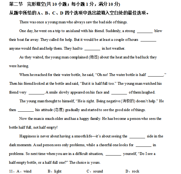 2025年云南省中考英语真题与答案解析.docx