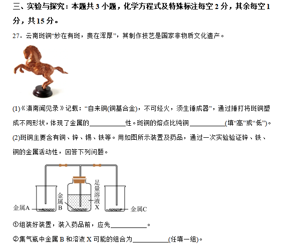 试卷以“科学探究与化学观念”为主线,突出基础性、应用性、综合性,将化学知识与日常生活、环境保护、科技前沿紧密结合,实验探究题的分值和难度均有提升,更加注重考查学生的实验设计能力和科学思维过程。